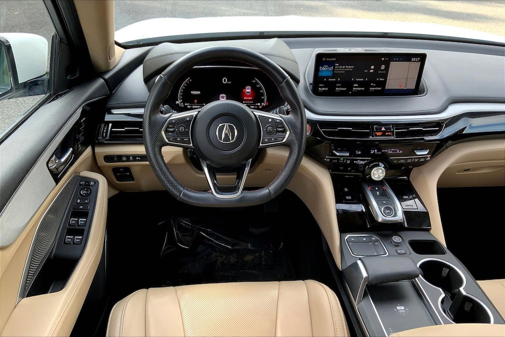 Platinum White Pearl 2022 Acura MDX Technology SH-AWD AWD 10-Speed Automatic 3.5L V6 SOHC i-VTEC 24V Parchment w/Perforated Premium Milano Leather Trimmed Seats, 3rd row seats: split-bench, Apple CarPlay/Android Auto, Exterior Parking Camera Rear, Heated front seats, Lane departure: Lane Keeping Assist System (LKAS) active, Navigation system: Acura Navigation System with 3D View, Perforated Premium Milano Leather Trimmed Seats, Power moonroof, Premium audio system: Acura/ELS Surround.