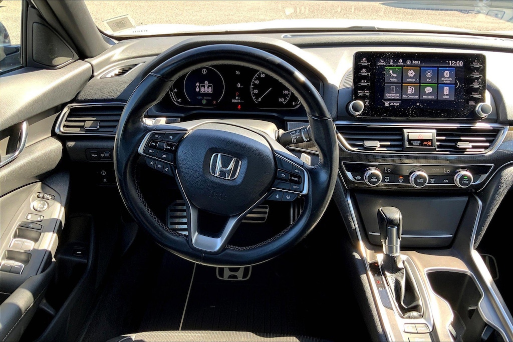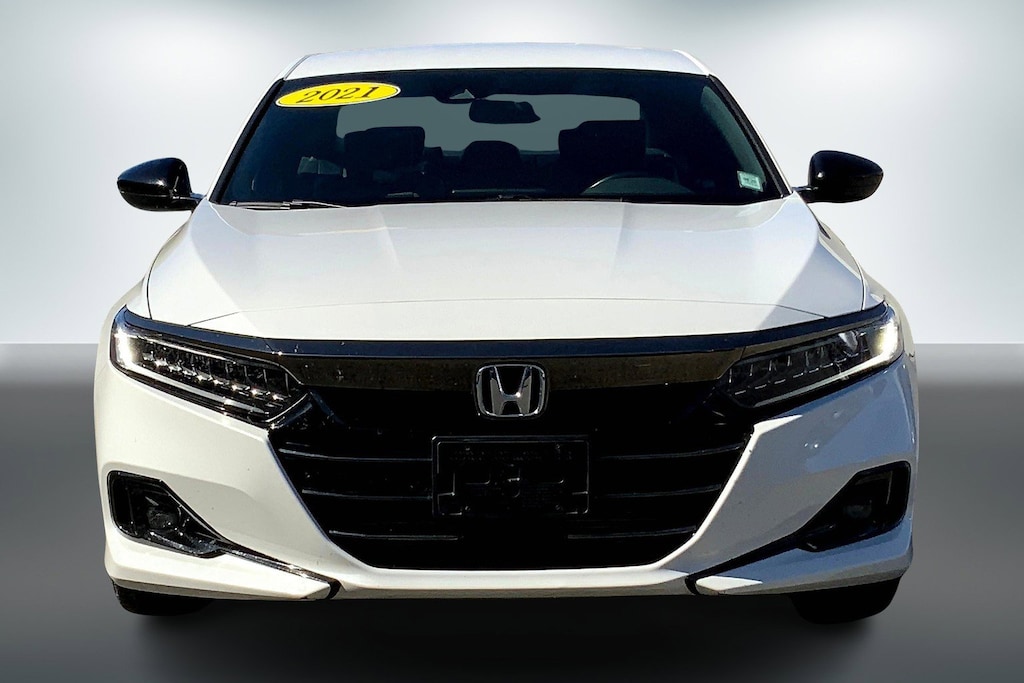 White 2021 Honda Accord Sport FWD CVT 1.5T I4 DOHC 16V Turbocharged VTEC Black Cloth.